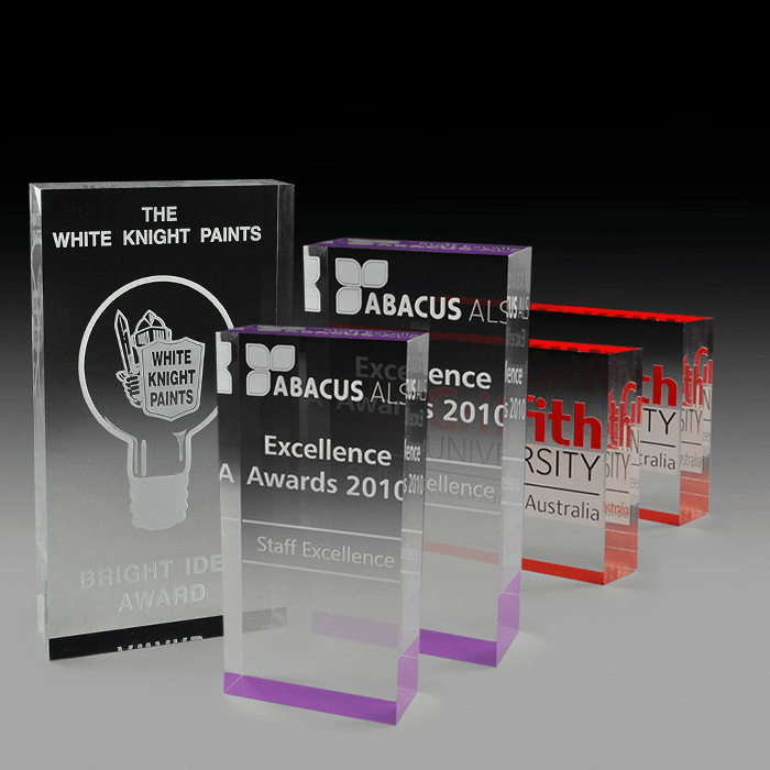 We can laser engrave logos, presentation text, winners names or any other grayscale artwork on all our trophy, award and plaque materials such as metals, timber, crystal, glass, acrylic, plastics and stone with our state-of-the-art laser technology.
