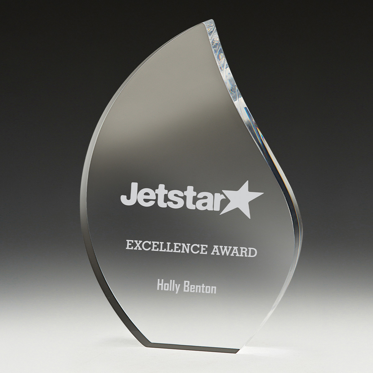 Free standing Tivoli Acrylic in an elegant teardrop design offers a versatile award for your custom personalisation.