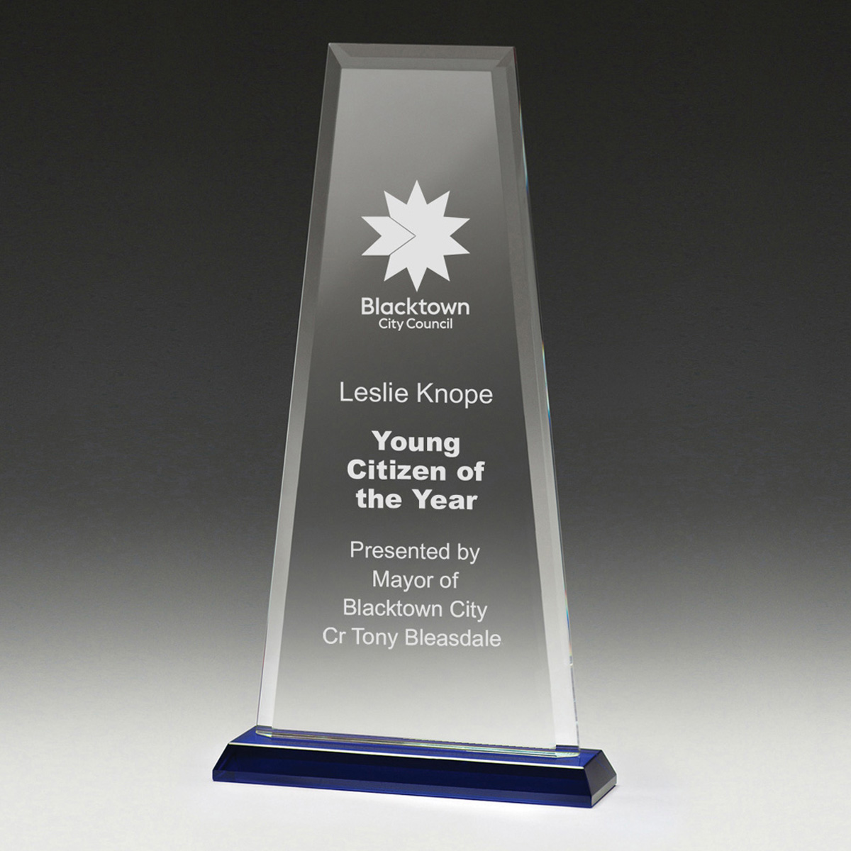 Offered in three sizes to suit various award levels, the Blue Glass Guardian is thoughtfully designed for both visual impact and personalisation. Each piece features a flawlessly smooth surface ideal for laser engraving, allowing for the addition of names, company logos or heartfelt messages of appreciation. With a solid 10mm glass thickness, it carries a premium weight and feel that reflects the significance of every milestone it celebrates.