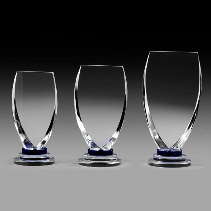 Perfect awards for your podium finishers. These crystal crest awards on tiered blue bases all come in individual quality gift boxes. Your award is laser engraved white or add vinyl colour to your corporate logo or branding.