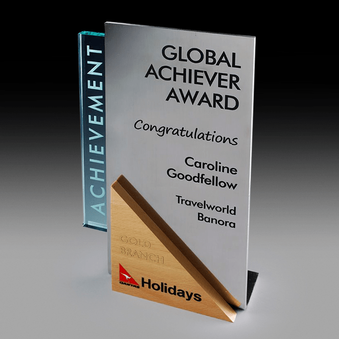 We can laser engrave logos, presentation text, winners names or any other grayscale artwork on all our trophy, award and plaque materials such as metals, timber, crystal, glass, acrylic, plastics and stone with our state-of-the-art laser technology.