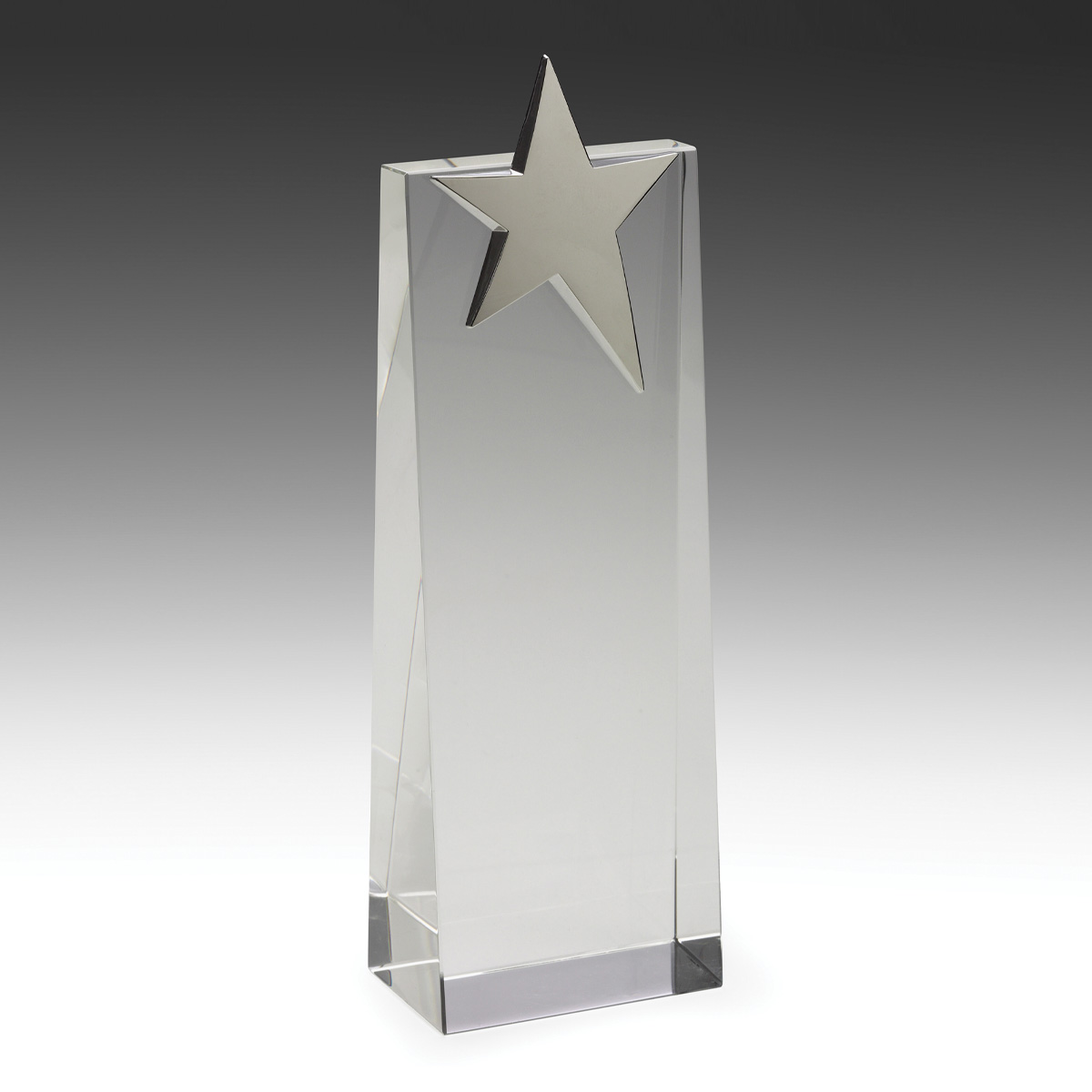 Celebrate exceptional achievement with the Stellar Star Crystal award, a striking combination of optical crystal and a silver chrome star. Its clean, tapered wedge design offers ample engraving space, making it ideal for corporate recognitions, sales milestones, or standout performances. The award’s substantial presence ensures it stands out in any setting.